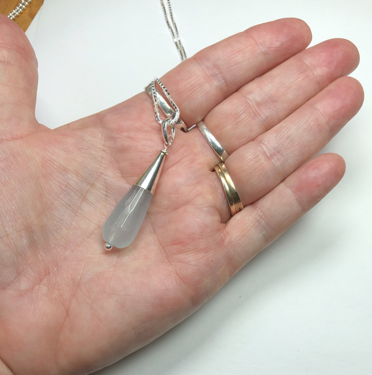 Aqua Blue Jade adds a captivating hue to any look when paired with this classic 30" box link sterling silver chain. The teardrop cut of the pendant adds a polished accent, sure to spark compliments anytime it's worn.