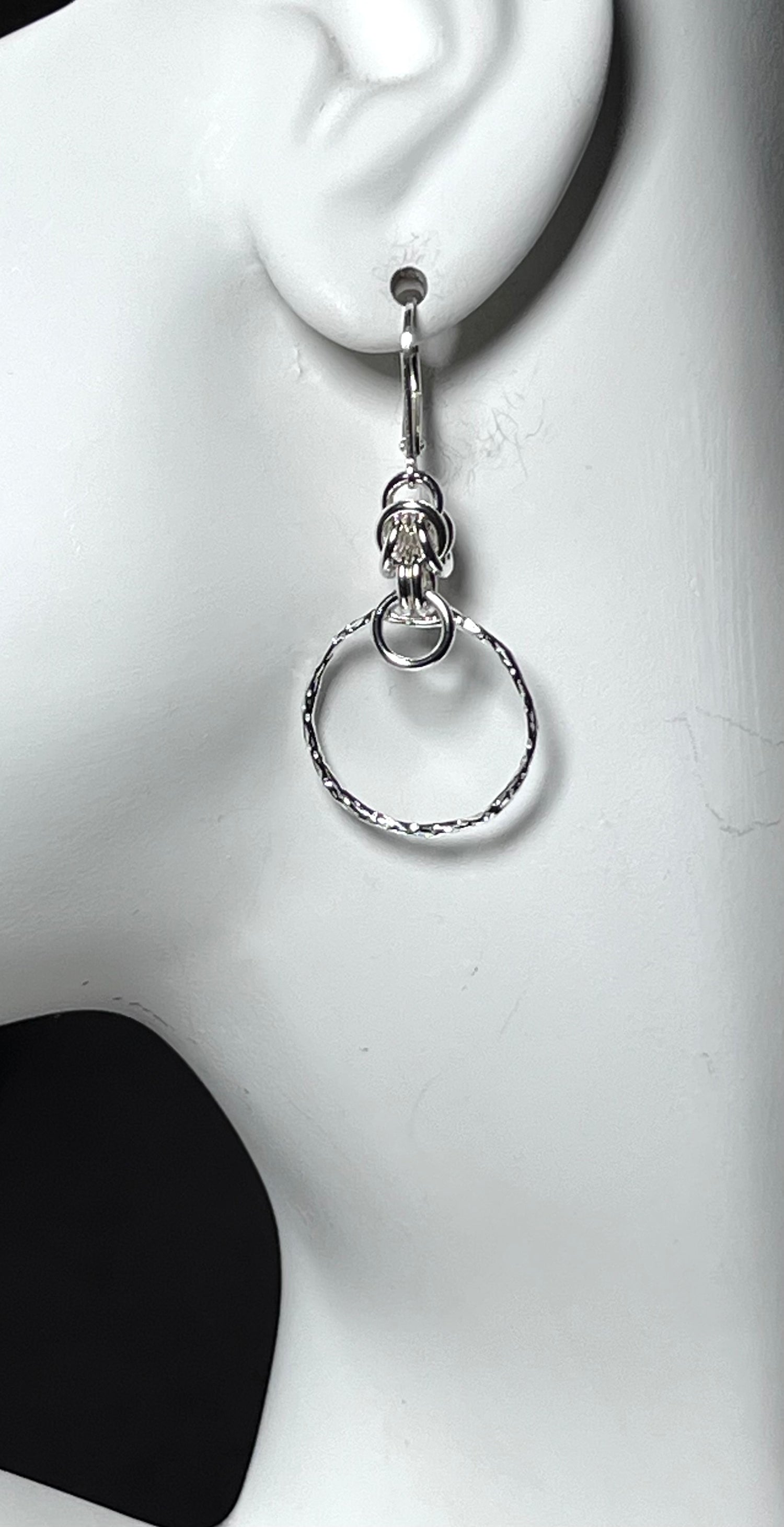 These Sterling Circle Earrings feature hammered circles suspended from a chainmail knot. Subtly elegant, they are dainty and one of a kind, making them perfect for special occasions or everyday!