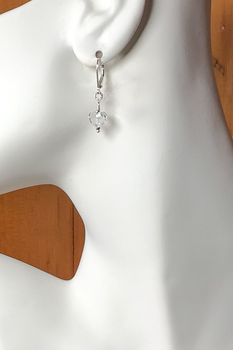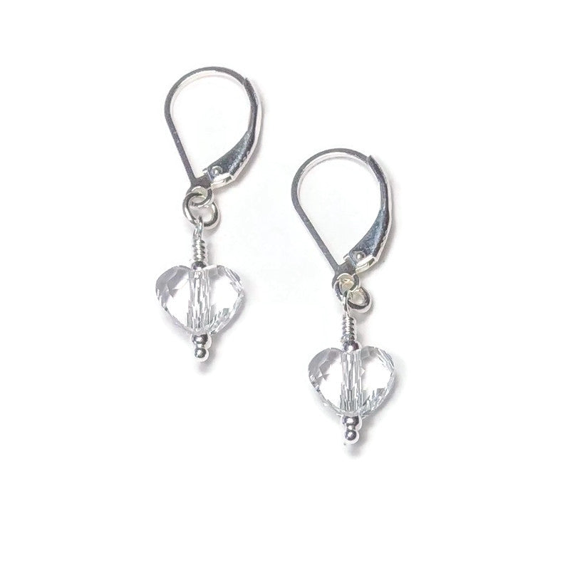 "These Clear Crystal Petite Heart Earrings are way more than just cute, they're charmingly irresistible! Sterling silver leverback earwires provide both security and comfort, making these earrings a must-have addition to any outfit. Perfect for adding a touch of elegant fun to your everyday look!"