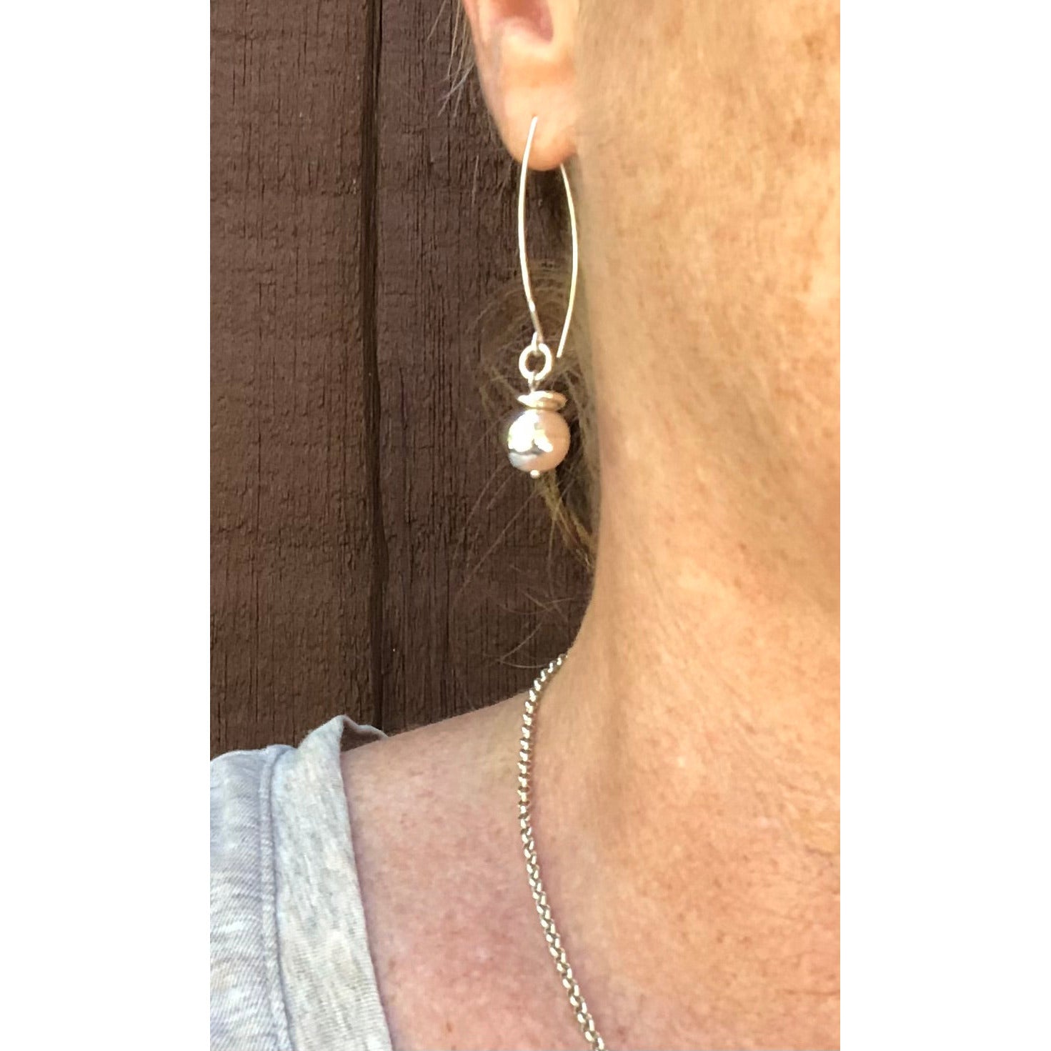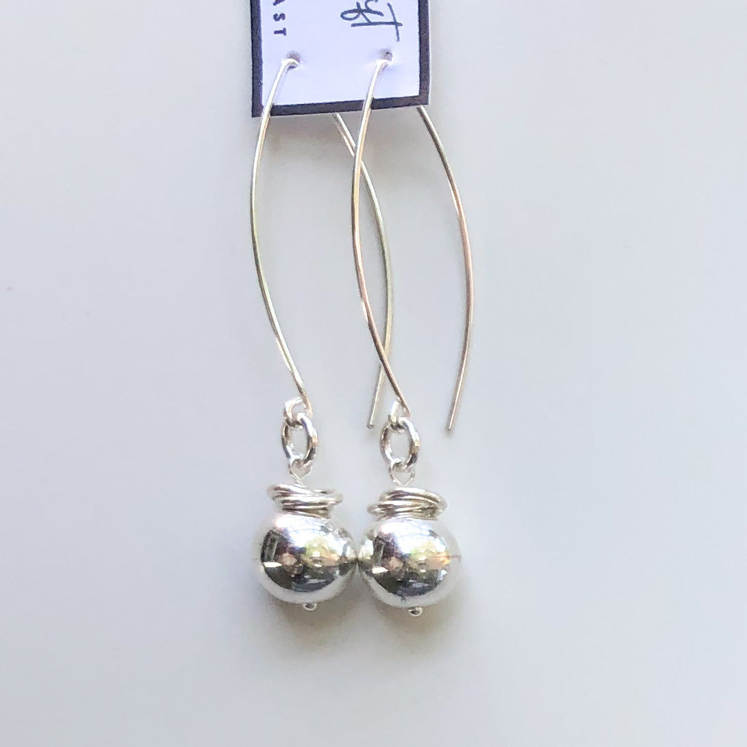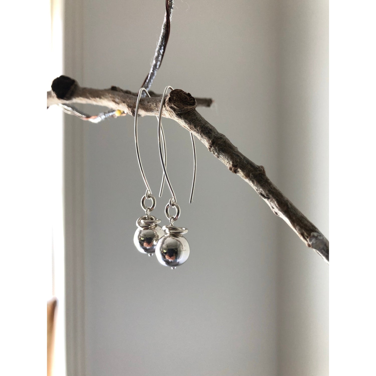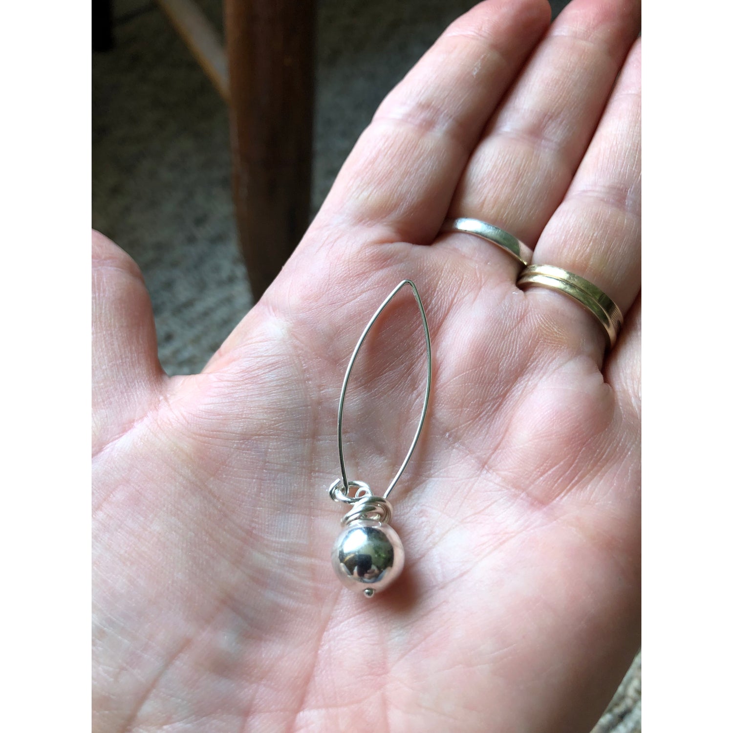 Curved Wire With Drop Bead Earrings | Long Earwires | Sterling Silver