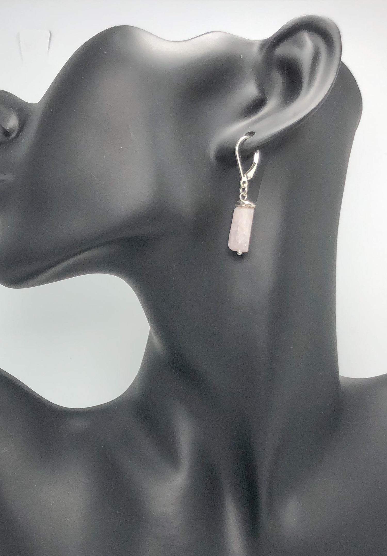 Soft, milky pink gemstones with my signature twist are suspended from sterling silver leverback earwires. So unique! One of a kind!