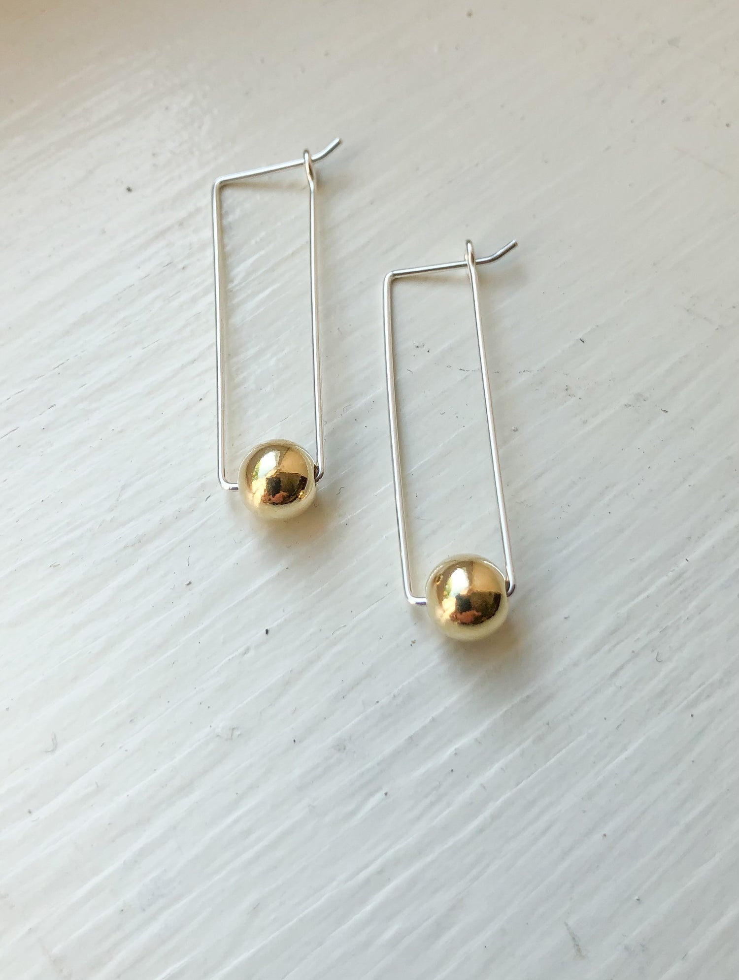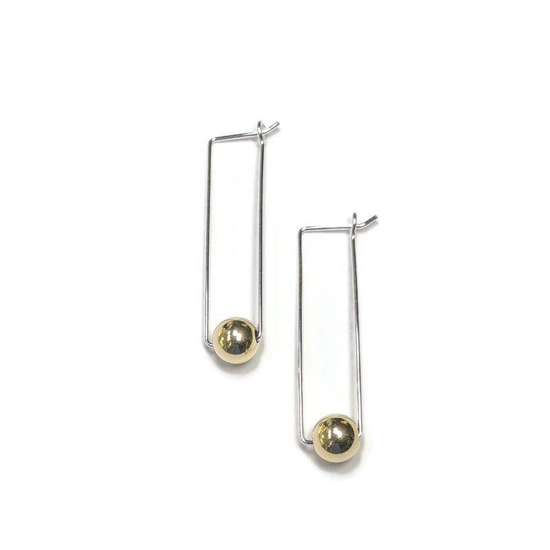 These Rectangular Hoops are crafted with modern simplicity in mind. The sterling silver construction fits comfortable around your ears, while the elegant 14k gold fill beads add a touch of luxury. Perfect for anyone looking for a classic yet modern look.