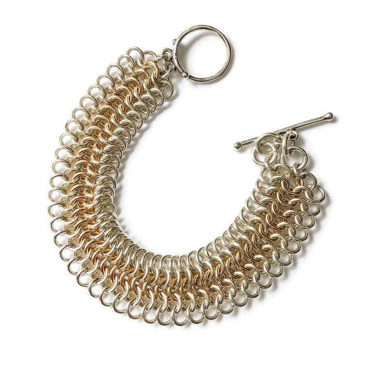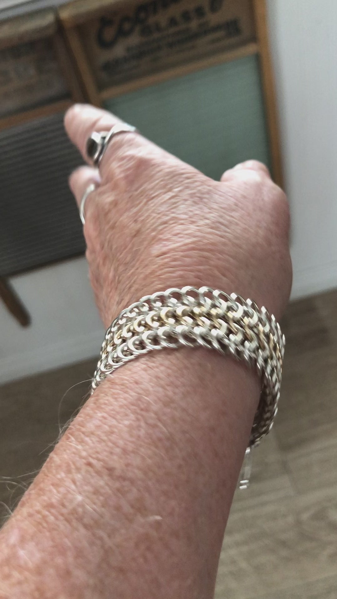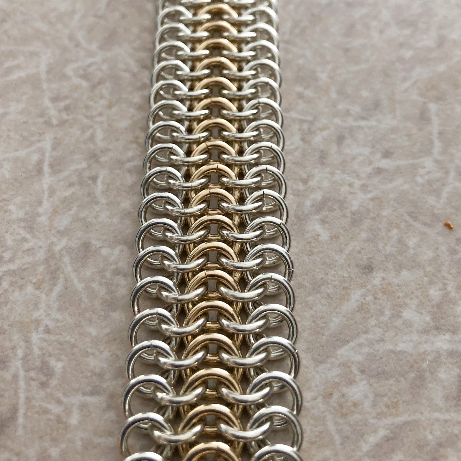 Sterling Silver rings and clasp with a row of 14k gold filled rings woven in down the middle.