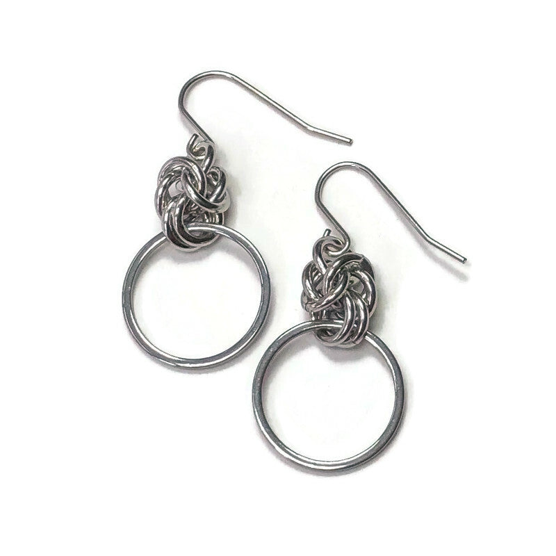 Get ready to add some edge to your jewelry collection with these Stainless Steel Earrings! Featuring a unique chainmail knot design, these circle earrings are the perfect blend of style and versatility. Rock them day or night for an unexpected twist on any outfit.