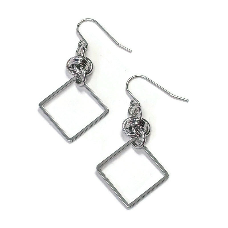 "Add a touch of whimsy to your accessory collection with these Stainless Steel Earrings featuring a unique chainmail flower knot design. Playful, yet elegant, these earrings are perfect for any occasion."