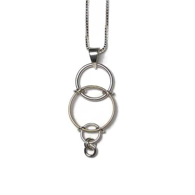 This Sterling and 14k Gold Fill Circle Necklace is the perfect contemporary accessory. With a stunning 18" Italian box link chain included, the large circle crafted from 14 K gold fill adds a touch of luxury to any outfit. Elevate your style with this timeless piece.