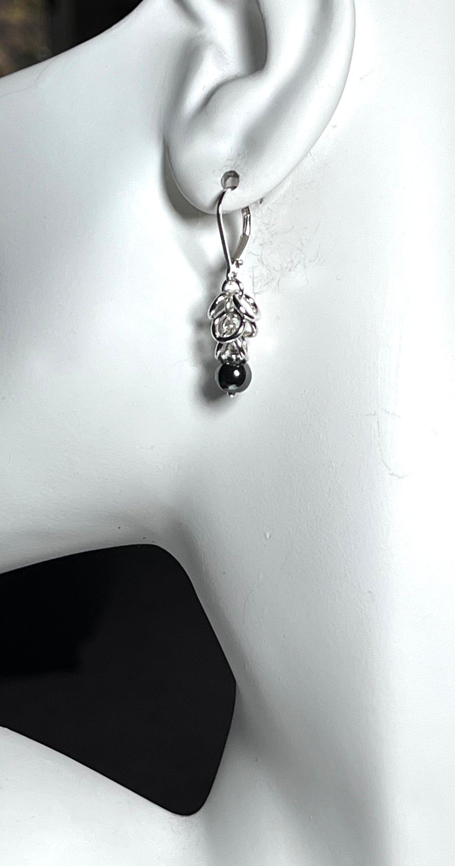 So fun!! A round, hematite bead is suspended by a cascade of sterling silver rings.