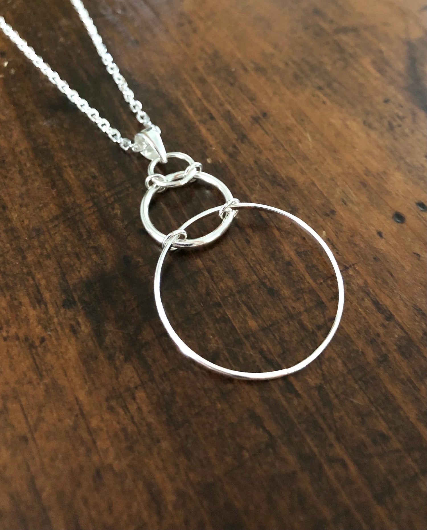 Expertly crafted from sterling silver, this Triple Circle Sterling Necklace adds a modern touch to any outfit with its contemporary design. The 18" diamond cut anchor chain adds sparkle and elegance, making it a versatile piece for any occasion. Elevate your style with this stunning accessory.