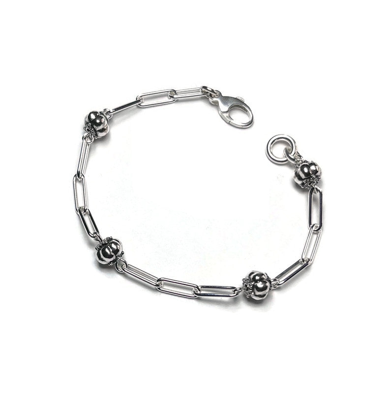 Handmade Bali beads combined with paperclip chain make a beautiful, dainty bracelet on its own or added to your bracelet stack!